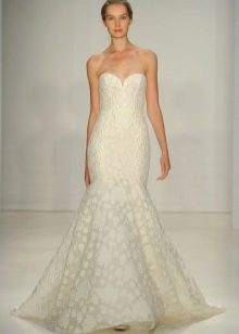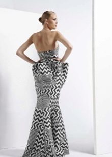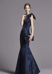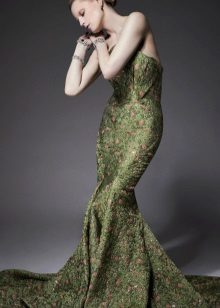 Jacquard mermaid dresses with a bustier bodice and maximally narrowed skirt are only suitable for special occasions. Flared from the knees, the “tail” lays down in beautiful heavy folds, due to the plasticity of the fabric, and the shape of the skirt is held by a tulle lining.