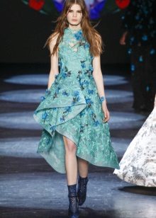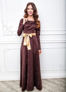 Jacquard dresses on the floor will be appropriate at the gala event. In this outfit, any woman will feel confident, because the voluminous and textured jacquard is able to hide all the flaws. If you have them, choose a model with a fitted bodice that emphasizes the waist line and extends to the bottom.
