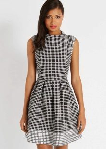 Another good option is a dress with a bell skirt. It also allows you to emphasize the waistline, but does not hide the hips, but adds volume to them. Therefore, it is suitable for girls with a boyish figure who want to add femininity to themselves. You need to wear it with high-heeled boats.