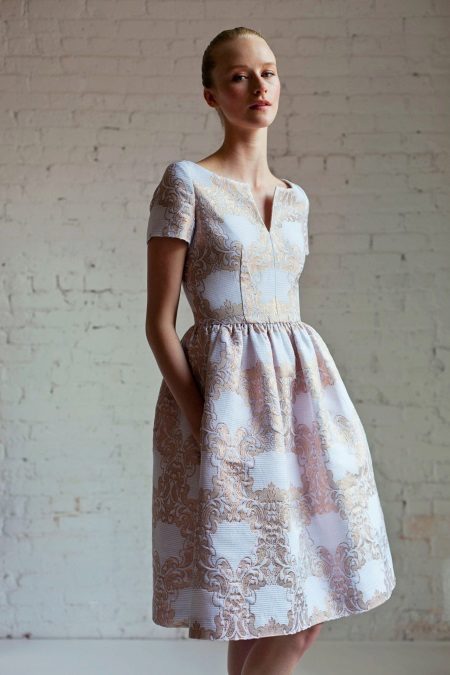 A jacquard cocktail dress is the perfect choice at all times. Thanks to the rich pattern, it does not require additional decoration, being completely self-sufficient.