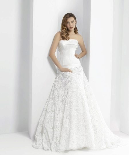 Lush jacquard dresses mainly have a corset. There is no emphasis on the bodice as on a skirt. It is decorated with frills, asymmetry, creases.