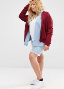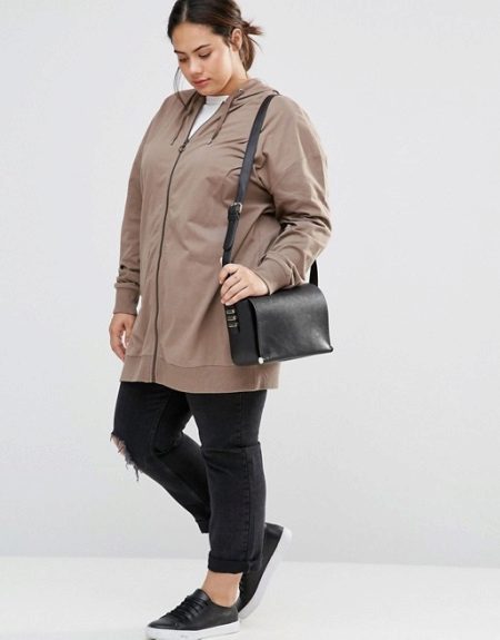 - The sweatshirt should cover your hips. It will help to correct the figure, hide full hips, and your silhouette will seem longer.