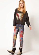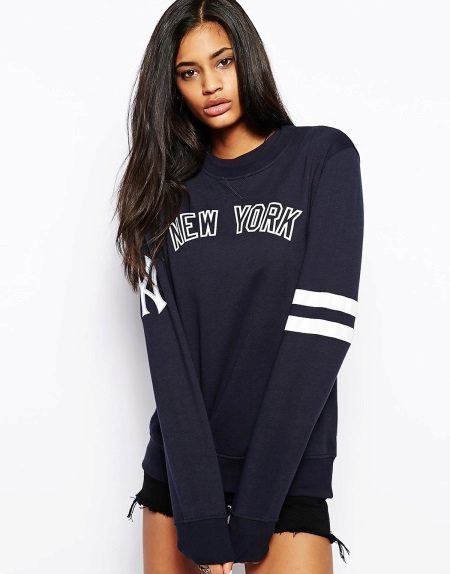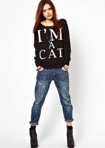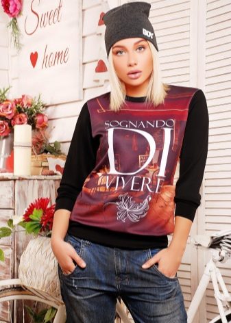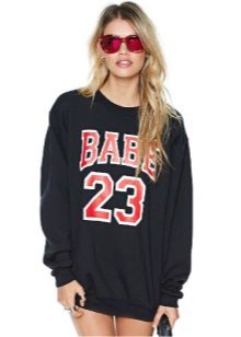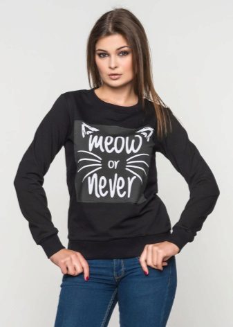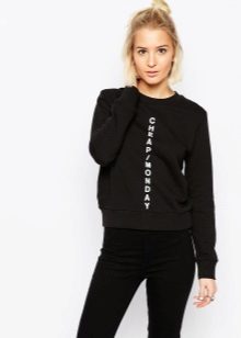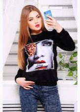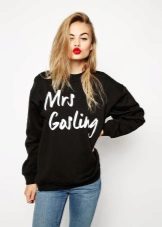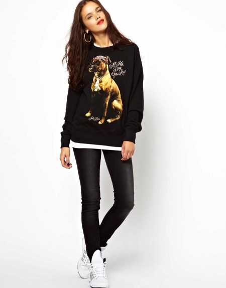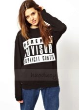 Black sweatshirts with large white inscriptions look very nice. These models are ideal pants or jeans in white or blue. There are models decorated with color drawings or floral ornaments. Such sweatshirts allow you to choose things in the tone of the picture, which greatly expands the color possibilities.