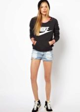 To create an elegant look, you just need to wear heeled shoes. Since the sweatshirt is more inclined to sports style, then the shoes should be appropriate. It is worth giving preference to shoes with stable heels or platform sandals.