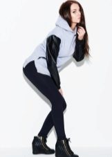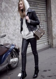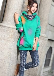 Thanks to the elongated fit, hoodies can be combined with leggings or leather pants with a tight fit. To make the image look harmonious with a bright top, you can combine the bottom in calm color schemes.