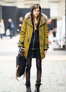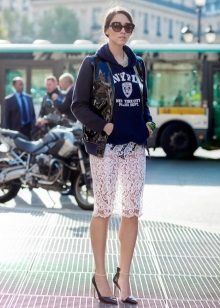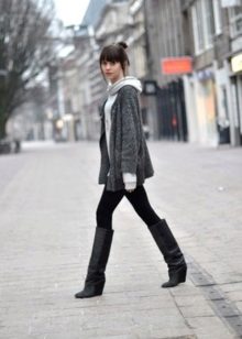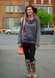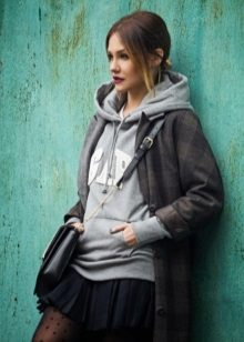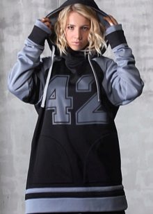A hoodie should not be worn with midi-length skirts, as the silhouette looks shapeless. It is worth paying attention to short skirts. An excellent complement to the image will be golf shoes or boots with high tops.