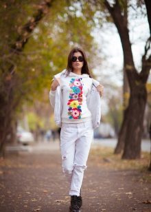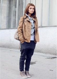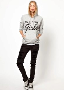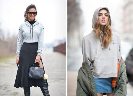 This element of clothing has already gone beyond the scope of sports style, as designers pay more attention to femininity. Today, a hoodie can be worn with different wardrobe elements to create a beautiful urban look. Skinny or loose jeans look great with a hoodie. For the embodiment of a free bow, it is worth paying attention to sneakers, and shoes will be better with jeans of a tight-fitting cut.