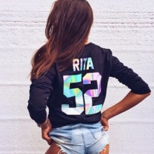 Hoodies can be decorated with first or last names. Often a personal number is added to them by analogy with the uniform of soccer players, hockey players and other athletes. The inscriptions are most often located on the back of the sweatshirt. The font and size of the letters may be different.