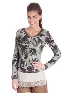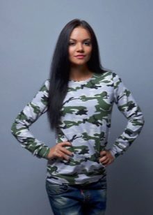 For fans of brighter and bolder decisions, you can advise using unexpected, contrasting combinations. For example, a camouflage sweatshirt paired with a skirt or shorts will look very impressive. Shoes do not have to be in a sports or military style: graceful boots and high-heeled shoes are suitable for this.