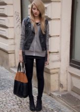 Tight pants go well with a voluminous sweatshirt. This helps to balance the bottom and top.