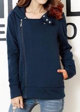 - WITH oblique lightningth - an interesting model that differs from the usual understanding of a zipper sweatshirt. Everyone is used to the fact that the snake runs strictly in the middle of the product. But designers, as always, want to surprise the consumer and sew in slanting lightnings. This adds originality and ease to the product.
