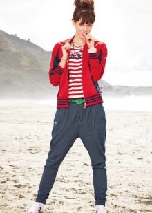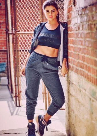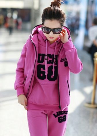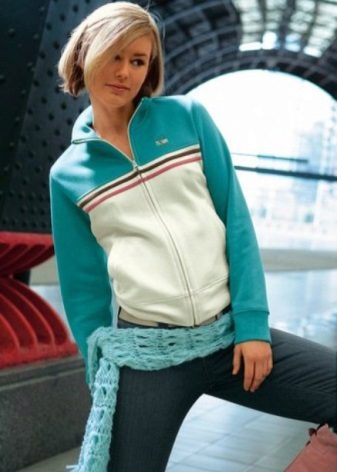 Two-piece tracksuit is ideal for sports. But the sweatshirt from him is suitable for other exits - with jeans for shopping, with a dress for a walk.