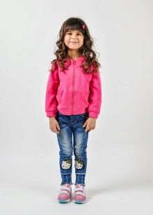 The Olympic jacket complete with jeans or sports trousers is an excellent solution for every day in the off-season. This is convenient clothing for girls of any age, it does not constrain movements and does not allow the child to freeze. Complement it with a bright vest on a synthetic winterizer, and get a stylish and warm look for your child.