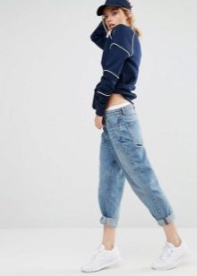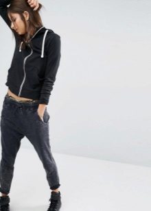 The most common combination is jeans, leggings or denim shorts. If you prefer the latter, the sweatshirt should be short enough. Otherwise, you may get the impression that you forgot to wear pants before leaving the house.