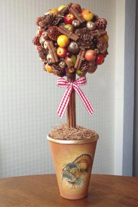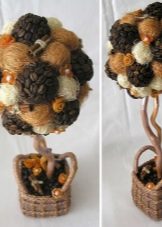 - Classical. The crown of such a topiary usually has a rounded shape, most often this craft is performed in restrained colors using coffee beans and other natural materials. There are no intricate decorations, the option is characterized by simplicity and exceptional elegance - a similar craft can be used to decorate the interior in a wide variety of stylistic directions.