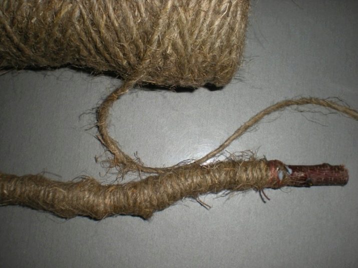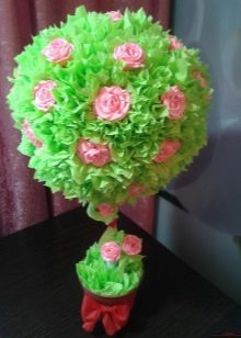 Step two - make out the trunk. The wire or stick you plan to use as a barrel is neatly covered with strips of tissue paper. If it is not, you can use satin ribbons or jute thread, and then fasten to the crown. When working with wire, you can slightly bend it.