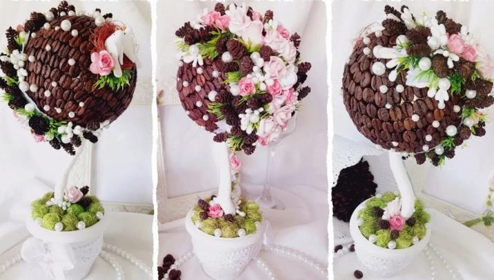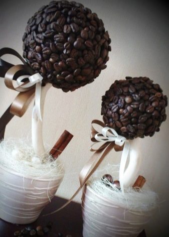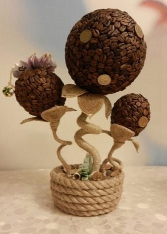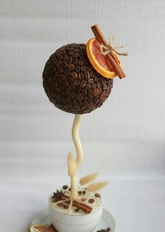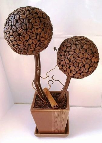 In order to choose the best way for you to design a coffee tree, we recommend that you be inspired by examples of finished works. We invite you to get acquainted with a small photo selection of the most beautiful crafts with interesting and unusual options for a topiary tree in pots.