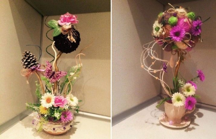 - Double or triple. These crafts require a little more time, however, the output is truly stylish and creative topiary. Here, several trunks grow from a common rod at once, they can have different shapes, thicknesses and heights.