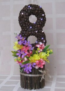 One of the most popular options for making topiary is coffee tree, and its creation is much easier than all of the above work. For a coffee gift for the spring holiday, you will not need to prepare decor elements separately. All you need to do is just buy a pack of coffee beans.