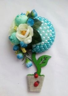 Beads are very popular in the manufacture of topiary. This material has a presentable appearance and a fairly affordable cost. An undoubted advantage is its durability and exceptional ease of use. That is why happiness trees made of flat beads are so popular with all hand-made lovers. The shape of the crown is usually selected depending on the skills of working with beads and the characteristics of the interior. The most common forms are cone, ball and birch.