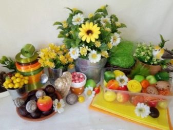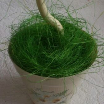 Then it remains only to take the threads for knitting, slightly confuse them and place them on top of it as an additional element of decor, in addition, you can use artificial moss, grass or sisal.