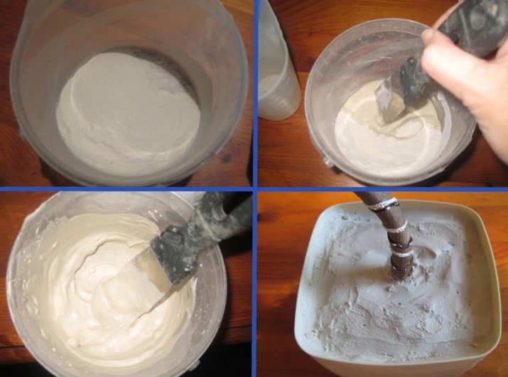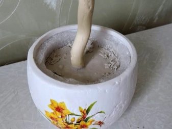 After this, a gypsum or alabaster solution is prepared. To do this, the powder is diluted with water, stirring, brought to a state of thick cream. When the composition begins to harden, topiary is immersed in it and held upright until the alabaster completely hardens.