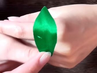 To make them, you need a green satin ribbon. Circles of several sizes are cut out of it, each blank is folded 4 times and the edges are melted over the flame, pressing against each other until the atlas is warmed up and the edge is melted.