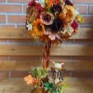 - Small topiary, decorated with colored fabric ribbons and artificial flowers.
