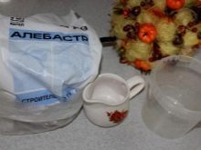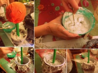 - To keep the topiary firmly in the box, it should be strengthened. To do this, you can use an additional vessel, the height of which coincides with the height of the box. We place the tree in a bowl, fill it with plaster and put the craft in a vase in a box. For the gypsum to dry completely, you need to wait about 24 hours. We place the topiary in the center of the prepared flower bed.