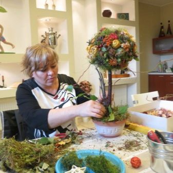 To make a charming autumn topiary with your own hands, you need to choose the appropriate master class and follow the instructions.Work must begin with the preparation of the necessary tools and materials.