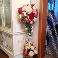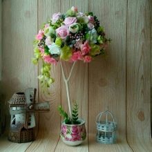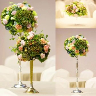 Topiary can be located on the table with the newlyweds and guests. They can also be used for photo shoots. Many of them look so natural using artificial materials that they can hardly be distinguished from real trees with fresh flowers.