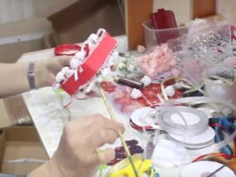 As for fabrics, it is not worth saving when choosing them. If there is a desire to make topiary from organza, it is better to buy it floristic, it holds its shape perfectly. The same goes for fabric for flowers. Stones, beads and rhinestones should also be of good quality, because at the wedding all the details are noticeable.