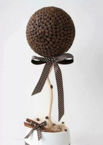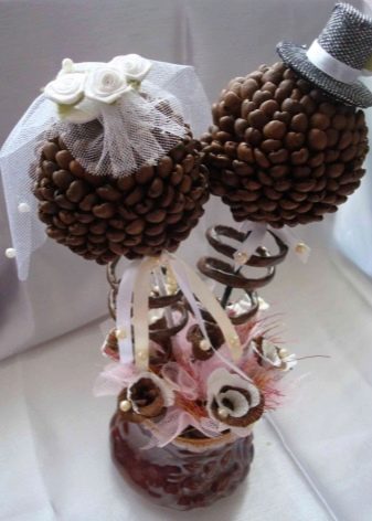 On the wedding anniversary, you can make a topiary of coffee beans, decorated with a decorative veil of the bride or a cute hat.