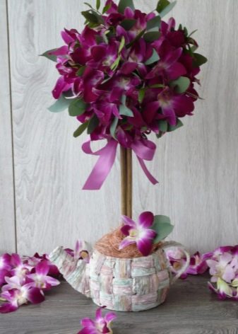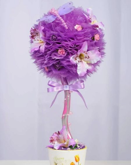 Ready-made topiaries for weddings, ceremonies and evenings with guests should be selected based on the characteristics of the holiday, paying particular attention to the color scheme, as well as the external content. Some brides may prefer organza topiary with birds and hearts, while others may want to see lush orchids on the trees.