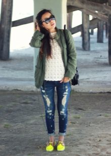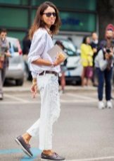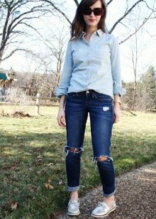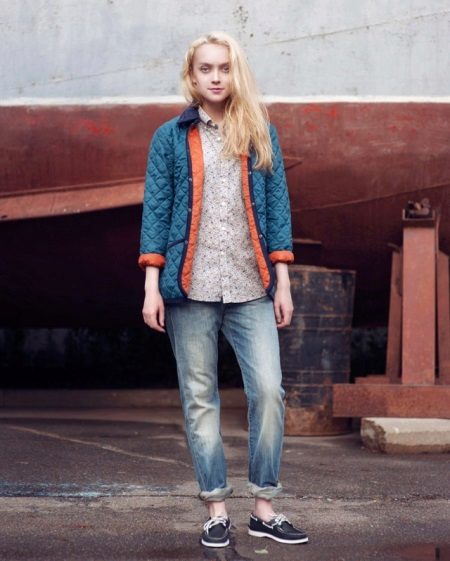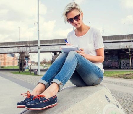 - Jeans. Putting on topsider with them, it turns out a stylish urban bow. In it you can go for a walk, study, go shopping, go on a date. Especially the shoes look good with boyfriends, skinny, straight jeans.
