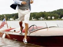 - Marine style as if specially created for boaters. White trousers and a blue striped top are the perfect look for a spa getaway.