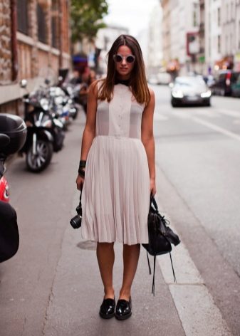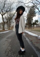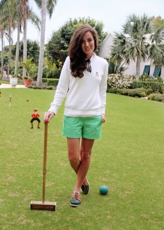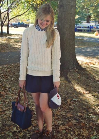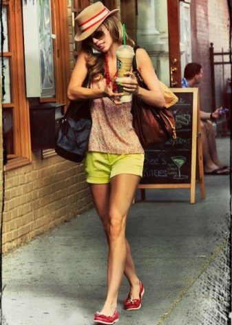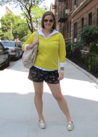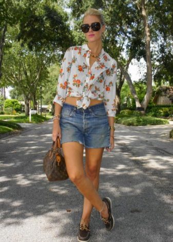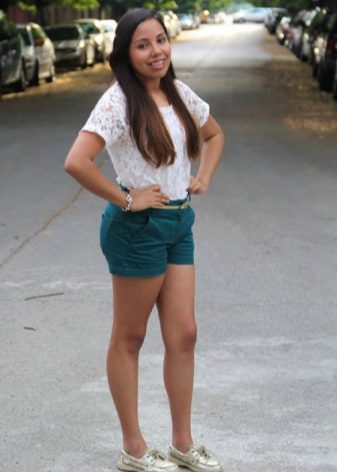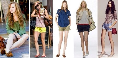 The most common variant of combining everyday things and this shoe model is obtained when choosing not too short shorts with lapels. It can be both denim products and shorts made of lighter fabrics (such as linen, cotton, chiffon) or more dense (tweed, felted wool, drape, velor).