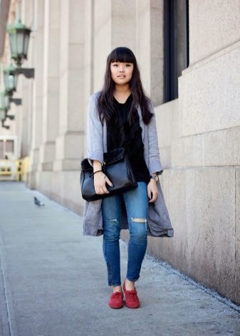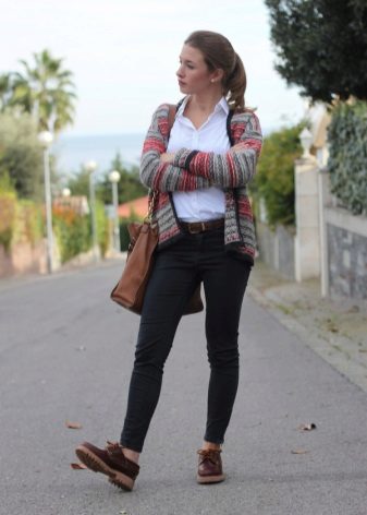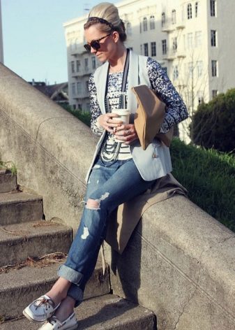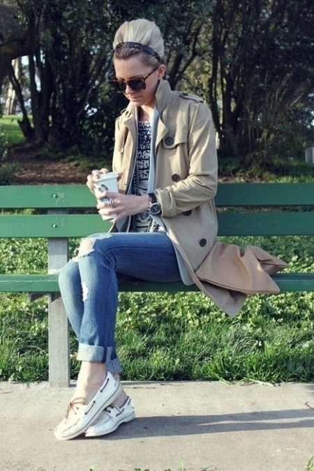 Boaters, being, in fact, shoes with flat soles, may not be suitable for every outfit, because in appearance they can be attributed more to sports style. To create different images that are not similar to each other, the same boaters can approach or, on the contrary, radically different models.