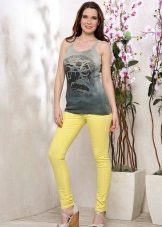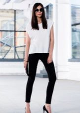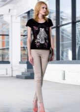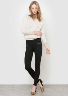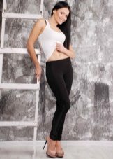Despite the fact that the name inherited from the trousers is a part inherited from trousers, first of all it is a derivative of leggings. Therefore, you can wear them with almost anything - There are no strict taboos on dresses and other wardrobe items incompatible with trousers.