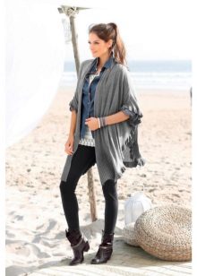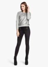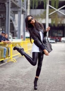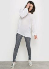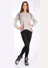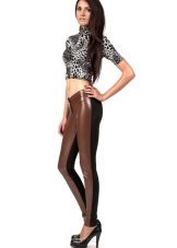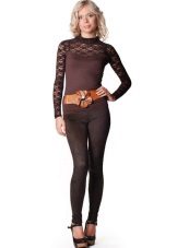 Best of all are the combination of elongated tops, cardigans, tunics, sweaters and blouses. Dresses, especially those of mini format, are also recommended by stylists for wearing with treggings (in case the figure of the girl allows such experiments). In winter, a sheepskin coat or fur coat is perfectly worn with them. To create more bold images, treggings are combined with leather jackets, white T-shirts or fur vests.