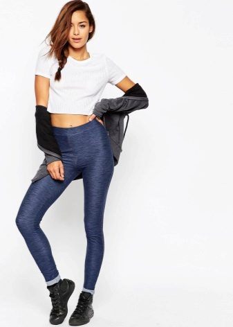 In order to thoroughly understand what the fundamental difference between the leggings from the juggins and leggings is, you must first determine the "degree of kinship". So, and jeggings, and treggings are modifications of leggings, combined with different options for other clothes. Treggins are a hybrid of trousers with leggings, while jeggings are a symbiosis of leggings and jeans.