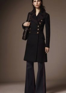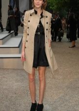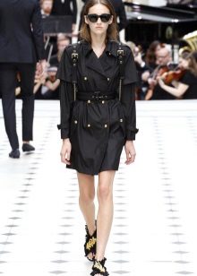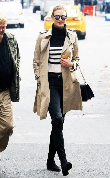 A black trench coat looks very good on any girl. The peculiarity is that it is difficult to pick up shoes and gloves, since everything can merge into one black spot.