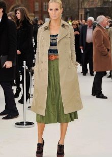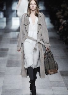 The main feature of the trench coat is the traditional knee length and slightly lower, but there are also elongated models.