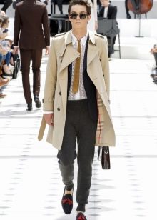 Trench coat looks best with a man’s suit. Although you can safely wear jeans and warm sweaters with a trench coat. The most important thing is not to wear sneakers or sneakers, because after all, trench is classic clothing.