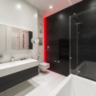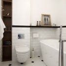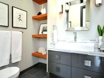 Think carefully about all the details. When hanging a mirror above the washbasin and constructing shelves in the water treatment area, consider the growth of people living in the apartment. Following fashion trends, first pass them through the prism of your own convenience. The beauty of design should not sacrifice the practicality and functionality of the room.