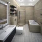 Modern design also involves restrained colors (gray, white, brown). However, there is no place for exquisite details and luxury. The preference is given to practicality, functionality, strict forms. The bathtub is often absent (replaced by a shower) or has the most concise design.