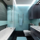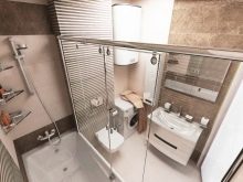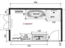 If the size of the short wall does not allow even a compact bathtub to be placed in it, another option is acceptable. You can place a toilet and a place for taking water procedures on the same line. In this case, it is advisable to build a small partition. If the bathroom is very small, it is better to give preference to a shower corner.