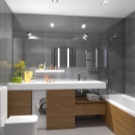 A neutral, but very stylish option is the design of the bathroom in gray tones. This calm and noble color is in trend today. Against its background, snow-white plumbing looks spectacular. The sheen of chrome accessories harmoniously complements the interior.