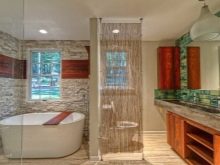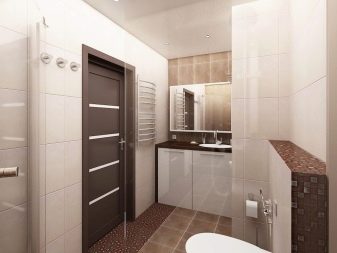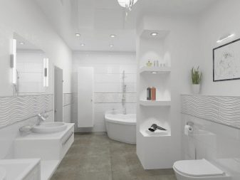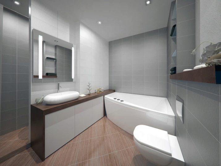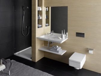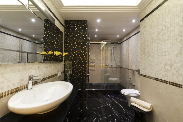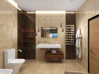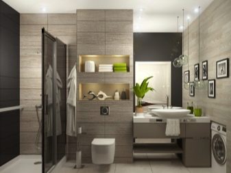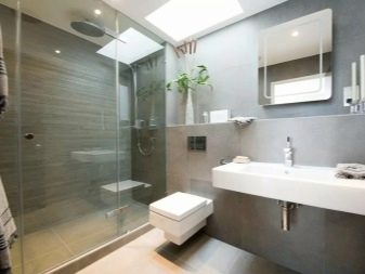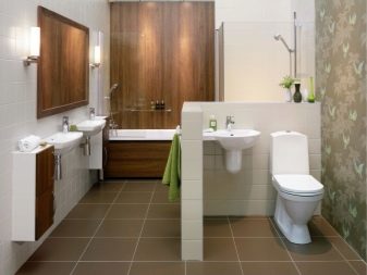 If the room is medium or large, it is desirable to distinguish functional zones in it. You can build a small partition between the toilet and the bathroom (shower). You can do with the use of materials of different shades and sizes. Also, designers actively apply the method of zoning with light.