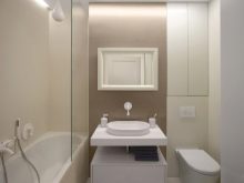When arranging cabinets and cabinets, remember that furniture should not interfere with free movement. Especially objects should not impede comfortable entry into the zone of acceptance of water procedures. Use the area under the washbasin, above the toilet. remember, that Built-in cabinets are more convenient to use than stand-alone models. Besides the fact that they do not create obstacles on the way, they do not clutter up the space and make the interior visually easier.